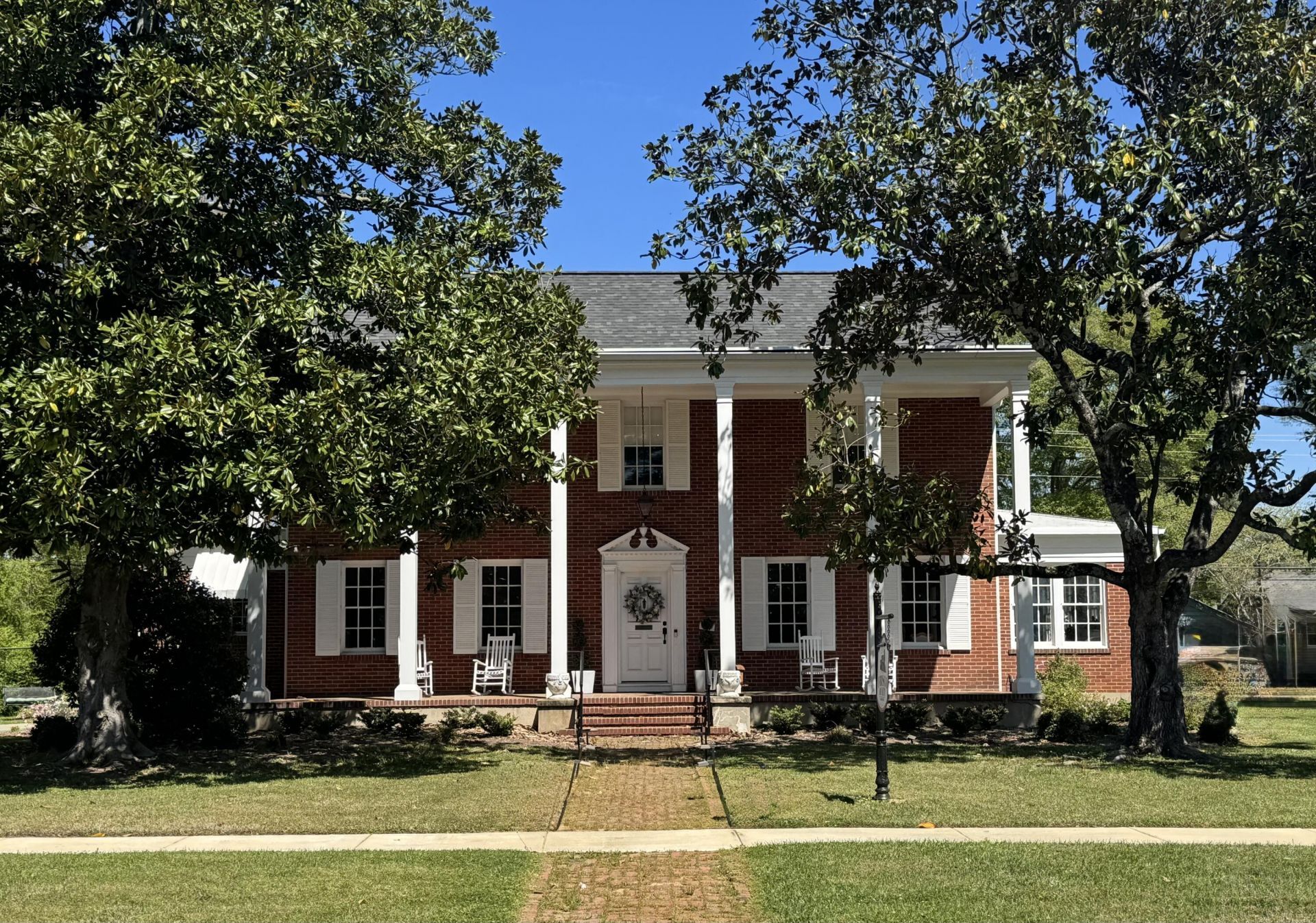 This distinguished two-story red brick residence, originally constructed in 1933, is a stunning example of Southern Colonial elegance blended with classic Greek Revival design. Framed by impressive white columns across the stately front facade, the home stands as a timeless showcase of architectural grace and historic Southern charm. Inside, the residence offers four generously sized bedrooms and three well-appointed bathrooms, providing both comfort and refinement. The thoughtfully designed floor plan includes a formal living room perfect for entertaining, an elegant dining room for memorable gatherings, a breakfast nook for informal dining, a private study ideal for work or reading, and a light-filled sunroom that invites peaceful mornings and relaxing afternoons. Agent owner.